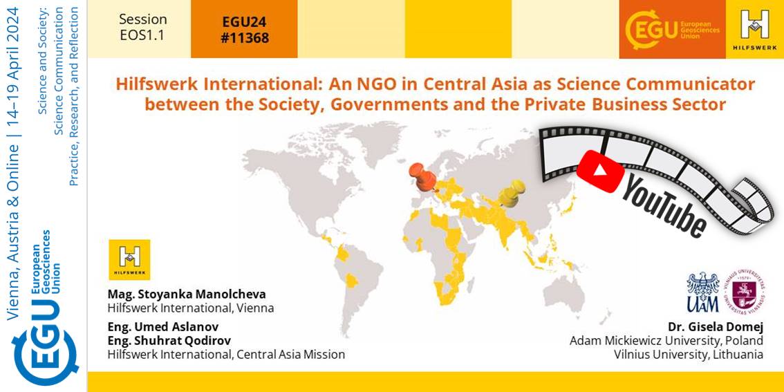 В апреле 2024 в Вене состоится ежегодная Генеральная Ассамблея Европейского Союза Геонаук. Мы принимаем участие в крупнейшей гео-конференции Европы с презентацией информационно-просветительской деятельности Hilfswerk International в Центральной Азии.