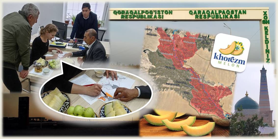 Совместно с нашими местными специалистами в Узбекистане и Ургенчским Государственным Университето мы подготовили точную карту зоны производства Хорезмской Дыни.